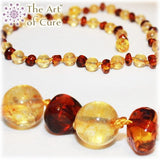 (12.5in) The Art of Cure Semi-Precious & Certified Baltic Amber Teething Necklace for Baby - Honey/Citrine