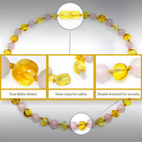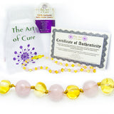 (12.5in) The Art of Cure Original Baltic Amber Teething Necklace- (Rose Quartz)