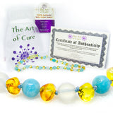 Baby necklaces are 12-12.5 inches in length, and bracelets are  roughly 5.5 inches in length. Packaging is custom from The Art of Cure™ and comes with a Keepsake pouch. The Art of Cure™ Baltic Amber is guaranteed to be of the highest quality and made to the best standards. Authenticity documents like a certificate of authenticity, testing and safety documents available upon request, or they can be viewed and downloaded online.