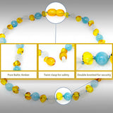 (12.5in) The Art of Cure Baltic Amber & Semi-Stone Baby Teething Necklace - (Honey & White Agate & Aquamarine)
